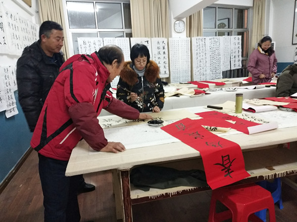 學(xué)員董兵說(shuō):“寫(xiě)春聯(lián)不僅可以宣傳當(dāng)今新生活,還能表達(dá)自己的祝福,我在社區(qū)工作十多年了,沒(méi)想到還能夠換一種方式為居民服務(wù),真是有意義的事。”剛上兩節(jié)課的新學(xué)員張?jiān)普f(shuō):“我是這里基礎(chǔ)最差的了,也跟著他們練練,說(shuō)不準(zhǔn)過(guò)年也能自己寫(xiě)春聯(lián)呢!”