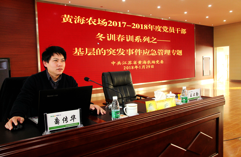 深冬時節,天氣格外寒冷,但黃海黨員干部冬訓春訓活動如一股熱浪,在黃海大地涌動。1月29日,黃海舉辦2017—2018年度黨員干部冬訓春訓活動(三),此次冬訓是繼“黨的十九大精神專題”和“全面從嚴治黨專題”集中學習輔導后,再次利用一周時間,組織黃海農場及黃海、宿遷分公司全體黨員干部開展“提升基層干部執行力、基層突發事件應急處置與管理、基層黨建、健康生活從我做起、‘信念、理想、愛國’及農業生產技術”等第三階段專題培訓。培訓期間,場黨委班子成員每人至少作一次講課,整個活動培訓人次達到10000人次。當前,黃海黨員干部冬訓春訓“集結號”已經吹響,接地氣、講實效、形式多樣、內容豐富的黨員干部冬訓春訓活動正如火如荼開展。