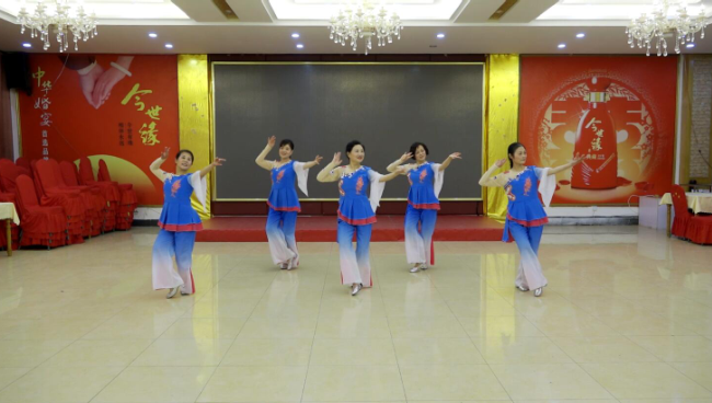 如今經過多場賽事考驗的農場本土教練,又產生了把農場退休舞蹈隊員們跳舞健身的風采拍下并上傳上網的想法。這一想法迅速得到了農場廣大姐妹們的贊同,并迅速組織排練、磨合和提高,在舞蹈表演熟練的基礎上,于是統(tǒng)一服裝,精心編排了“哈達”和“幸福小城”的舞蹈,讓農場職工和廣大網民見證了淮海老年職工的舞蹈風采。圖為農場老年舞蹈隊員們在精心排練“哈達”和“幸福小城”舞蹈在優(yōu)酷網上截屏時的鏡頭。