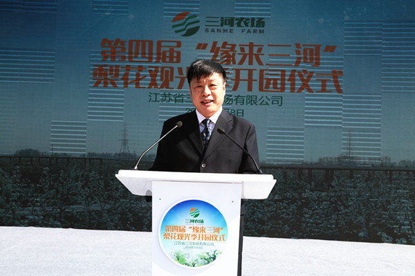 4月8日,三河農場有限公司第四屆“緣來三河”梨花觀光季活動在三河農場有限公司梨妍花語隆重舉行。江蘇省國資委監事會主席李海洋、江蘇農墾集團公司黨委委員、總會計師劉克英、盱眙縣委書記梁三元、盱眙縣人民政府副縣長鄭海梁、南京東南大學旅游系主任宣國富、江蘇農墾農業發展股份有限公司、江蘇省大華種業集團有限公司等單位領導及盱眙部委辦局領導等出席開園儀式。