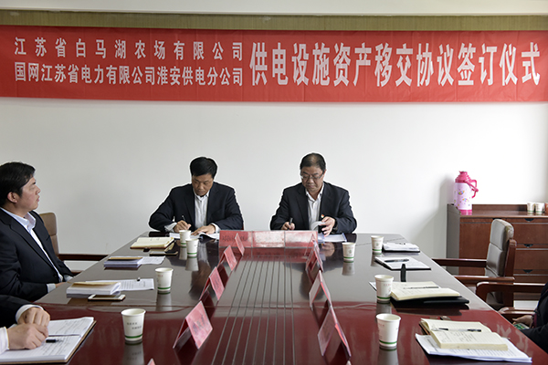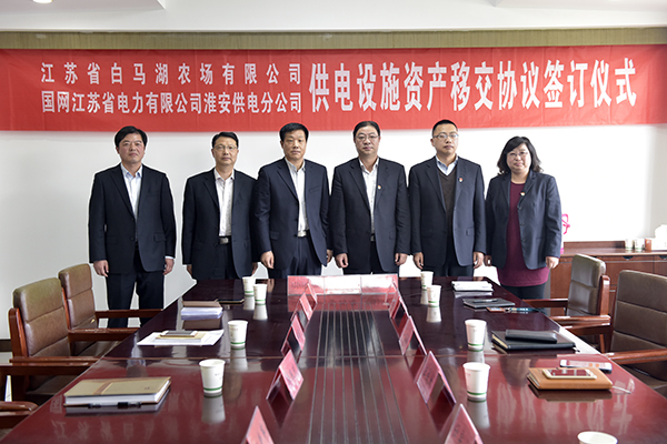 4月16日下午,江蘇省白馬湖農(nóng)場有限公司與國網(wǎng)江蘇省電力有限公司淮安供電分公司簽訂供電設施資產(chǎn)移交協(xié)議,開啟雙方攜手發(fā)展、合作共贏的新篇章。