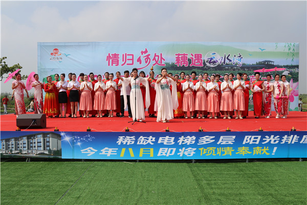 隨后大家一起觀看了古典舞《荷花頌》、葫蘆絲二重奏《再唱山歌給黨聽》、武術表演《精忠報國》、經典古詩詞詠唱《使至塞上》、歌曲對唱等自編自演的節目表演贏得了現場嘉賓及游客的陣陣掌聲。演出現場還穿插了微信紅包、幸運游客抽獎等互動環節,吸引了眾多游客現場參與,為荷花節聚集了人氣。