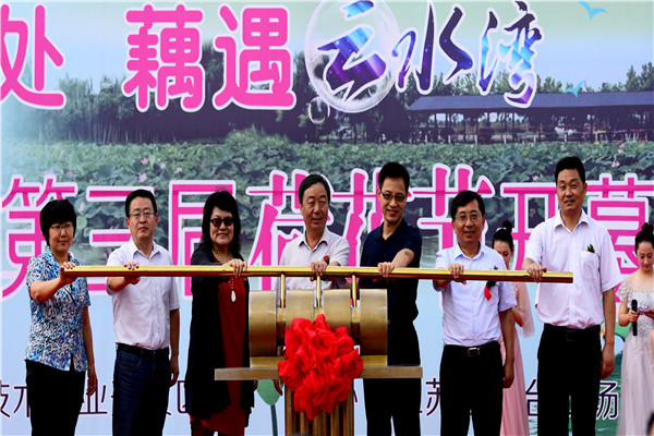 荷叢搖曳,蓮葉田田,風姿各異的花朵或含苞待放,或亭亭玉立,或迎風盛開,又到了荷花盛開的季節。7月21日上午由連云港市旅游局、連云港市高新區共同主辦,江蘇農墾云臺農場有限公司承辦的以“情歸荷處·藕遇云水灣”為主題的2018連云港第三屆“荷花節”正式開幕。省國資委第一監事會主席李海洋、連云港市人大副主任董春科、江蘇農墾集團公司黨委委員、總會計師劉克英等連云港市旅游、國土等有關領導、云臺領導班子全體成員及游客近萬人參加了開幕式。