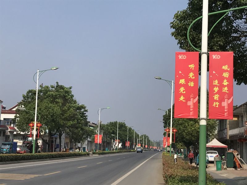 早在5月份,一組熱烈慶祝中國共產黨成立100周年的綠雕就將辦公樓前的花壇裝點一新。根據慶祝建黨100周年氛圍營造方案,近期,施工人員抓緊對350省道小城鎮段、裕源大道、建場路的燈桿上安裝印有“中國夢”字樣的中國結景觀燈,同時穿插“不忘初心,牢記使命”、“砥礪奮進,追夢前行”、“聽黨話,跟黨走”以及企業精神的道旗和宣傳標語等,營造出一派紅色、熱烈、喜慶、向上的濃厚氛圍。