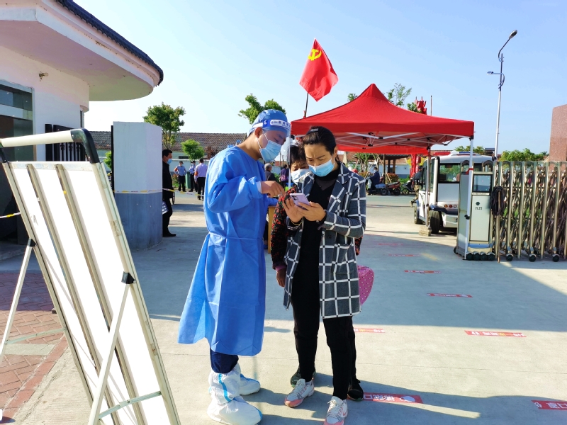 我在崗,您省心。“能做一點(diǎn)是一點(diǎn),疫情防控是我們大家共同的事。”姜明亮是社區(qū)機(jī)關(guān)黨支部一名預(yù)備黨員,當(dāng)他得知5月3日夜班值班人員臨時(shí)有事便主動(dòng)請(qǐng)纓,從晚上八點(diǎn)到次日早晨八點(diǎn),他把承諾當(dāng)做責(zé)任來(lái)踐行。5月4日農(nóng)場(chǎng)組織全員核酸檢測(cè),他一掃夜班值守的疲憊,直奔迎湖健身廣場(chǎng)核酸采樣點(diǎn),背上消毒機(jī)進(jìn)行現(xiàn)場(chǎng)環(huán)境消殺。劉圩小學(xué)采樣點(diǎn),只見一位“小藍(lán)”手拿擴(kuò)音喇叭對(duì)著居民喊話:“病毒無(wú)情人有情,健康連著你我他,請(qǐng)大家保持一米線。”經(jīng)過仔細(xì)辨認(rèn)大家才認(rèn)出她是社區(qū)財(cái)務(wù)劉玉。“平時(shí)聲音不大,維持秩序時(shí)聲音倒不小。”大家紛紛為她點(diǎn)贊。“您好,請(qǐng)出示身份信息。”三分場(chǎng)工作人員劉昕身穿白色防護(hù)服,正忙著采集身份信息。朝陽(yáng)下,汗水浸透了衣衫、曬紅了臉頰,他卻沒有一聲抱怨。當(dāng)天他共采集490個(gè)信息,這也是他連續(xù)五次完成三分場(chǎng)采集點(diǎn)數(shù)據(jù)采集任務(wù)。