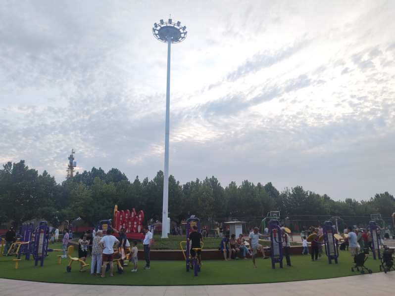 7月19日傍晚,江蘇省射陽(yáng)縣淮海農(nóng)場(chǎng)職工休閑體育運(yùn)動(dòng)廣場(chǎng)重新開放,廣場(chǎng)南側(cè)橢圓形的花池邊,新安裝的34套嶄新的健身器材立即吸引了周邊的職工居民和孩童等前來(lái)愜意地玩耍,場(chǎng)面十分熱鬧壯觀。