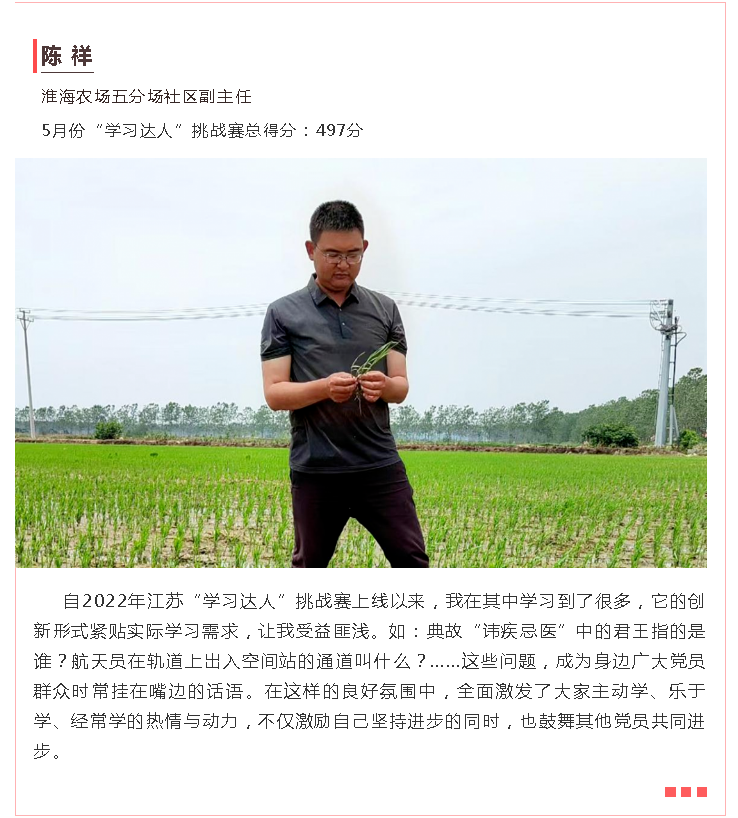 為推動(dòng)黨史學(xué)習(xí)教育常態(tài)化長(zhǎng)效化,進(jìn)一步建好用好“學(xué)習(xí)強(qiáng)國(guó)”學(xué)習(xí)平臺(tái),射陽縣根據(jù)省、市、縣的統(tǒng)一部署,5月中旬以來,全縣3.5萬余名“學(xué)習(xí)強(qiáng)國(guó)”學(xué)員積極參與“喜迎二十大奮進(jìn)新征程”——2022江蘇“學(xué)習(xí)達(dá)人”挑戰(zhàn)賽,一大批“學(xué)習(xí)達(dá)人”脫穎而出,形成了以賽促學(xué)、比學(xué)趕超的生動(dòng)局面。