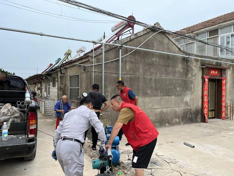 近日,室外近40度的高溫撲面而來,熱氣令人眩暈。然而,在炎炎烈日中城南居委會黨支部黨員志愿者與射陽新奧燃氣公司的工作人員在居民區內對天然氣管道進行測壓與施工,他們揮汗如雨、從不懈怠,始終堅守在自己的崗位上。面對高溫炙烤烈日的直射,黨員志愿者自行購置防暑降溫物資如藿香正氣水、清涼油防暑藥品,以備不時之需。協調安裝天然氣管道各種突發的情況,為了居民安全使用上管道天然氣保駕護航。