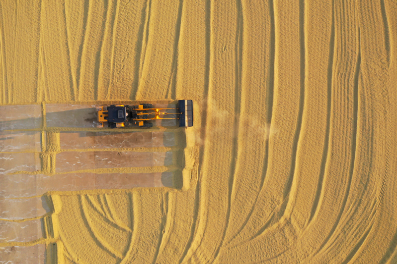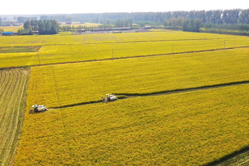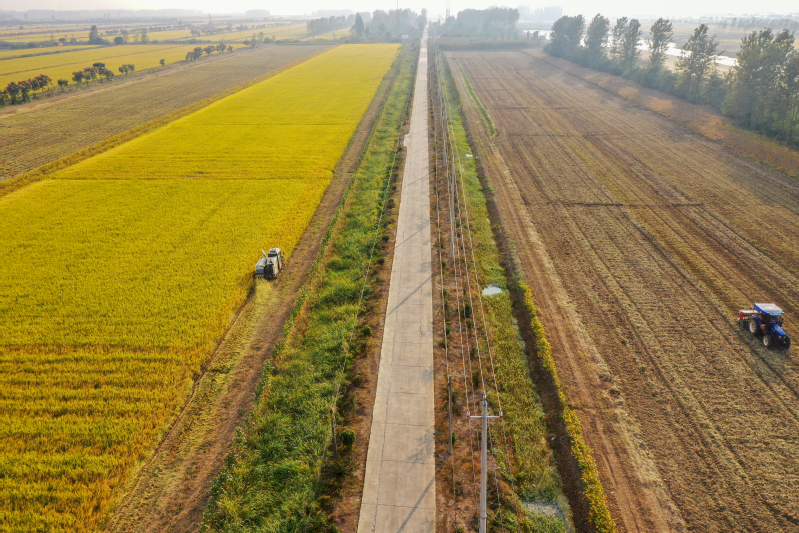 金秋十月,豐收季節(jié)。高空俯瞰寶應湖農(nóng)場,田間地頭,收割機來回穿梭,曬糧場,稻谷飄香,處處呈現(xiàn)如畫般的豐收美景。水稻收割完之后,旋耕機、播種機隨即“登場”,將一粒粒麥種播撒進田間,為來年豐收打下基礎。