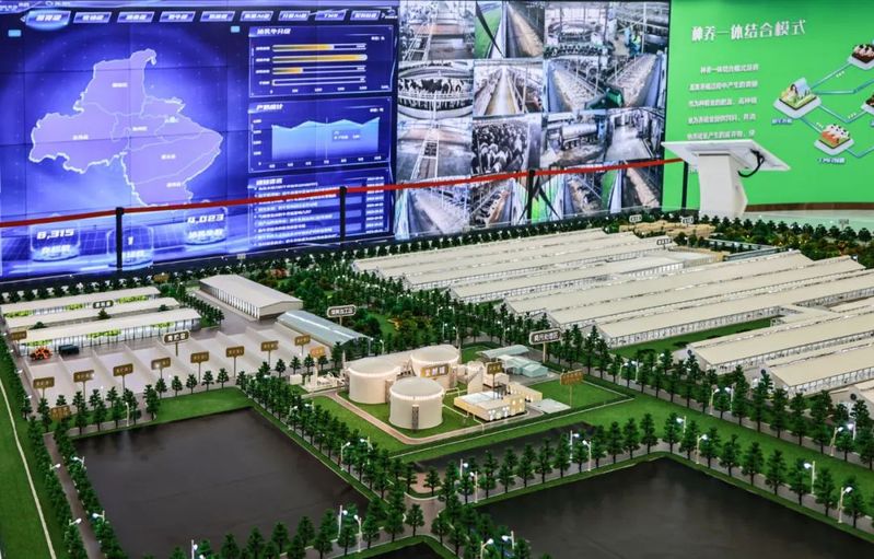 生態(tài)化發(fā)展加速轉(zhuǎn)型。牧場智慧生態(tài)系統(tǒng)的污水循環(huán)管理設(shè)備包含牧場污水管路3D圖與污水監(jiān)測點位信息,實時監(jiān)測牧場污水指標(biāo),并將數(shù)據(jù)同步上傳至環(huán)保部門,確保牧場水質(zhì)監(jiān)管到位。沼氣發(fā)電系統(tǒng)將標(biāo)準(zhǔn)化工藝處理糞污產(chǎn)生的沼氣用于發(fā)電,沼液利用后的沼渣作為牛床墊料的生產(chǎn)原料,不僅成本低,還有效降低了養(yǎng)殖風(fēng)險。同時在場區(qū)配備廢氣檢測設(shè)備監(jiān)測養(yǎng)殖氣體環(huán)境,配備消防監(jiān)控設(shè)備監(jiān)測飼草區(qū)與沼氣發(fā)電區(qū)域煙火狀況。智能生態(tài)系統(tǒng)采取糞污固體發(fā)酵、沼氣烘干回床、沼液還田方式,實現(xiàn)“變廢為寶”。對牧場糞污發(fā)酵后的液位進行采集,經(jīng)過無害化處理后的沼液通過預(yù)設(shè)專用管道,在卷盤式噴灌機的運轉(zhuǎn)下自動噴灑在專屬消納用地的田間作物上,形成種養(yǎng)一體循環(huán),有效提高了糞污綜合利用水平。