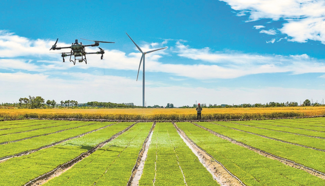 昨日,位于射陽(yáng)縣的江蘇農(nóng)墾新洋農(nóng)場(chǎng)搶抓農(nóng)時(shí),組織植保無(wú)人機(jī)對(duì)水稻秧苗進(jìn)行飛防作業(yè),通過(guò)精準(zhǔn)施藥和施肥,提高育秧質(zhì)量,為水稻豐產(chǎn)增收夯實(shí)基礎(chǔ)。 張偉生 攝 (視覺(jué)江蘇網(wǎng)供圖)