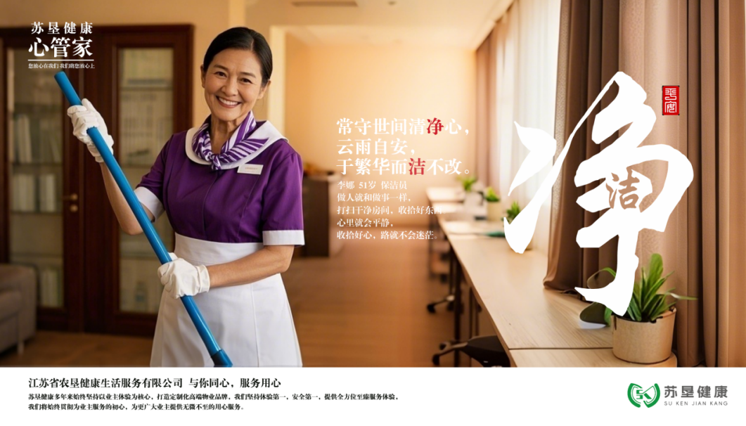 蘇墾健康制定嚴謹?shù)谋嵙鞒膛c標(biāo)準(zhǔn),從公共區(qū)域的日常清掃、垃圾清運,到各專間的深度清潔、消毒除臭,每個環(huán)節(jié)都嚴格把控。配備先進清潔設(shè)備與環(huán)保清潔用品,確保服務(wù)區(qū)域始終整潔、明亮,為業(yè)主帶來舒適的視覺與體感體驗。