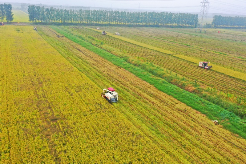 2025年10月10日,蘇墾農(nóng)發(fā)崗埠分公司正在搶收水稻。秋收時(shí)節(jié),天氣復(fù)雜多變,給秋收工作帶來(lái)一定困難,崗埠分公司按照“成熟一塊、收獲一塊”的原則,組織200多臺(tái)收運(yùn)機(jī)械,集中力量加緊進(jìn)行機(jī)械搶收作業(yè),確保成熟玉米、水稻等秋糧及時(shí)歸倉(cāng)。