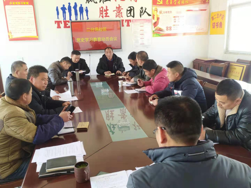 3月22日下午,淮海農(nóng)場(chǎng)公司二分場(chǎng)社區(qū)召開(kāi)黨史學(xué)習(xí)教育動(dòng)員部署會(huì),深入學(xué)習(xí)貫徹習(xí)近平總書(shū)記在黨史學(xué)習(xí)教育動(dòng)員大會(huì)上的重要講話精神,認(rèn)真落實(shí)農(nóng)場(chǎng)公司黨委決策部署,對(duì)社區(qū)開(kāi)展黨史學(xué)習(xí)教育進(jìn)行安排部署。社區(qū)總支副書(shū)記傳達(dá)了農(nóng)場(chǎng)公司黨史學(xué)習(xí)教育動(dòng)員部署會(huì)議精神并作動(dòng)員講話,社區(qū)干事詳細(xì)解讀農(nóng)場(chǎng)公司黨委黨史學(xué)習(xí)教育實(shí)施方案。