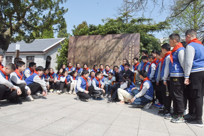 “1952年4月,我們農(nóng)建四師的萬余官兵來淮海農(nóng)場屯墾戍邊的路途中,即便是下雨天也從不擾民,夜晚老百姓的屋檐下、草堆旁官兵是席地而睡,讓老百姓深受感動。”4月14日上午,在農(nóng)建四師大院內(nèi)的毛澤東發(fā)布的“農(nóng)業(yè)建設(shè)、生產(chǎn)待命”命令碑文前,89歲的原農(nóng)建四師戰(zhàn)士胡福生正在給射陽縣淮海小學(xué)六年級的學(xué)生講黨史場史,“‘不與民爭地、不與民爭利’列入了農(nóng)場的建場方針,我們共產(chǎn)黨人是千方百計地保護(hù)農(nóng)民群眾的利益?!?/span>