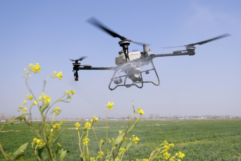 蘇墾農發臨海分公司全面開啟在田麥苗化控、噴肥等飛防作業,為夏糧豐收筑牢根基。一臺臺植保無人機在麥田上方來回穿梭,精準地將藥液噴灑在麥苗上。