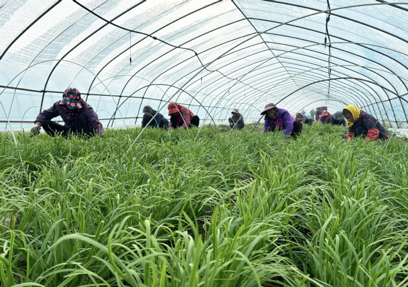 1月22日上午,走進淮海農場高效園韭菜種植大棚內,只見10余名員工正搶收第二茬韭菜,收割、分揀、捆扎……一捆捆嫩綠的韭菜被依次裝筐銷售,現場一片忙碌的景象。自去年12月頭刀韭菜開鐮銷售以來,淮海已銷售了5萬斤韭菜,營收近12萬元。