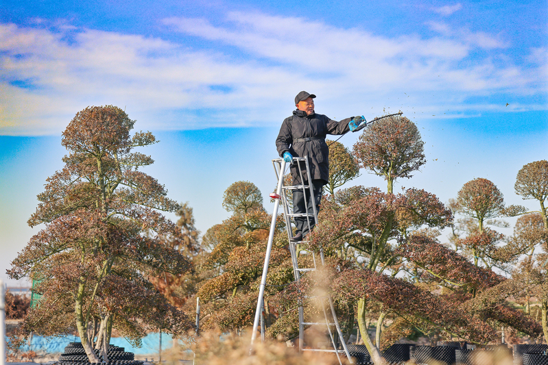 1月7日,新洋農場組織工作人員,對容器苗基地內的苗木進行修剪管護。隨著溫度的降低,大部分苗木進入冬季休眠期,新洋搶抓晴好天氣和有利時機,加強苗木冬季管護,準備供應春節市場。