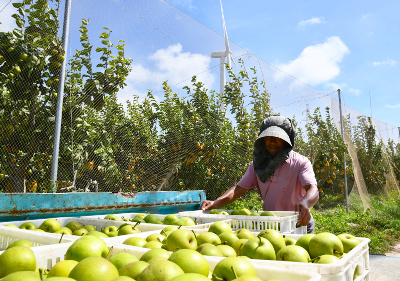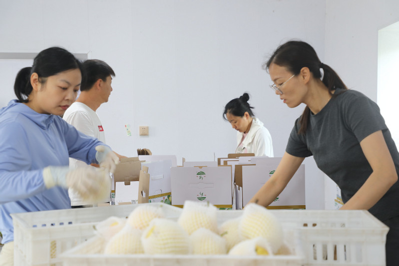 日前,三河農場生態梨園正式開園采摘,滿樹的翠玉梨掛滿枝頭,果實飽滿、色澤誘人。圖為工作人員正在認真挑選、精心包裝,將大小均勻、品質優良的梨子裝入精美的包裝盒。