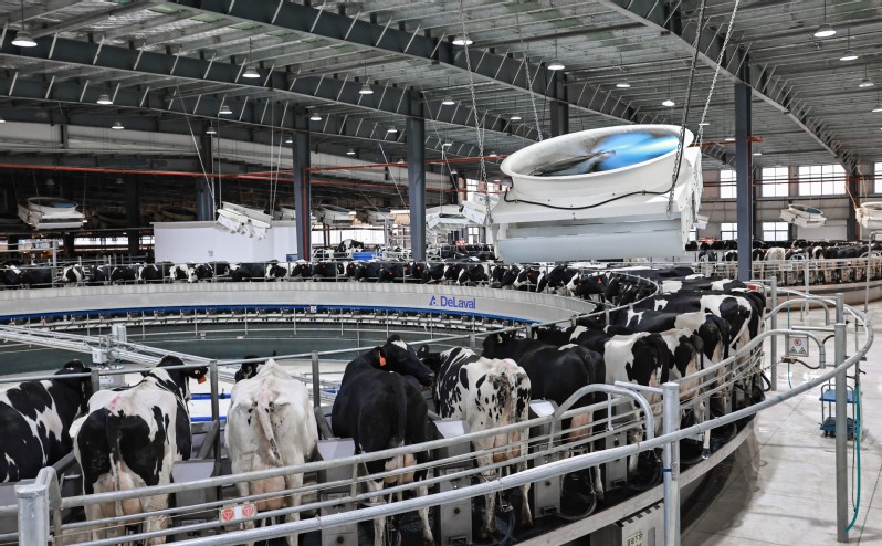 AI攝像頭、溫濕度傳感器、智能項(xiàng)圈、電子耳標(biāo)……人工智能、物聯(lián)網(wǎng)、大數(shù)據(jù)系統(tǒng)集成聯(lián)動(dòng),一臺(tái)臺(tái)自動(dòng)化設(shè)備在存欄8300余頭奶牛的牧場(chǎng)內(nèi)高效運(yùn)轉(zhuǎn)。這是蘇墾優(yōu)然牧業(yè)生態(tài)智慧牧場(chǎng)內(nèi)的一幕,也是江蘇農(nóng)墾推進(jìn)智慧農(nóng)業(yè)發(fā)展,實(shí)現(xiàn)農(nóng)業(yè)生產(chǎn)數(shù)字化的典型場(chǎng)景。大數(shù)據(jù)管理平臺(tái)將牧場(chǎng)繁殖、疾病、轉(zhuǎn)群、防疫、營(yíng)養(yǎng)、DHI、成本等生產(chǎn)數(shù)據(jù)收集匯總,實(shí)現(xiàn)生產(chǎn)管理數(shù)字化、流程化、智能化,大幅提高了鮮奶的產(chǎn)量和質(zhì)量,鮮奶質(zhì)量?jī)?yōu)于歐盟標(biāo)準(zhǔn),牧場(chǎng)成功入選2022年智慧江蘇重點(diǎn)工程。蘇墾優(yōu)然智慧牧場(chǎng)建設(shè)主要分為數(shù)字化信息綜合平臺(tái)、牧場(chǎng)智能化設(shè)備、實(shí)時(shí)監(jiān)控、無(wú)線網(wǎng)絡(luò)覆蓋及數(shù)據(jù)中心。無(wú)線網(wǎng)絡(luò)覆蓋為監(jiān)控設(shè)備與智能化硬件設(shè)備提供網(wǎng)絡(luò)服務(wù),實(shí)現(xiàn)牧場(chǎng)智能化設(shè)備數(shù)據(jù)的實(shí)時(shí)上傳和監(jiān)控設(shè)備實(shí)時(shí)監(jiān)控。大數(shù)據(jù)駕駛艙共分為17個(gè)模塊,展示牧場(chǎng)位置及牧場(chǎng)總體概況數(shù)據(jù),包括牧場(chǎng)實(shí)時(shí)存欄、生態(tài)環(huán)保、飼養(yǎng)分級(jí)、圈舍分布、通知咨詢等。物聯(lián)網(wǎng)賦能提質(zhì)添智。在蘇墾優(yōu)然牧場(chǎng),飼養(yǎng)員每天早上都會(huì)打開手機(jī),“智慧養(yǎng)殖系統(tǒng)相當(dāng)于給每頭奶牛頒發(fā)了可自動(dòng)采集數(shù)據(jù)的電子身份證,個(gè)體牛只基本檔案一牛一碼、一目了然,查看奶牛身體狀況更加方便了。”原來還要為牛舍的事進(jìn)進(jìn)出出,現(xiàn)在只