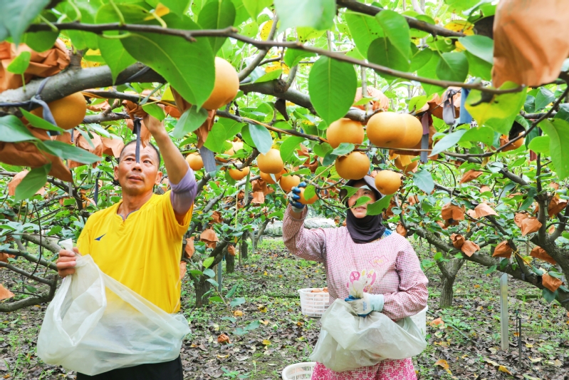 近日,江心沙農場“明星水果”秋月梨、陽光玫瑰等火爆上市,迎來海量訂單,僅兩日就售出2000箱,20000余斤。據介紹,此次訂單主要來自周邊市場,還沒開園就咨詢電話不斷,其中往年老顧客占八成,回頭率頗高。圖為批量采摘、包裝,和零售場景。