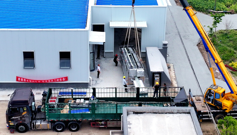 “起鉤!”隨著產(chǎn)業(yè)辦加工基地負(fù)責(zé)人一聲令下,吊車吊帶瞬間繃直,平板車上鮮食玉米加工設(shè)備氣吹式剝皮機(jī)、切頭去尾機(jī)緩緩脫離,產(chǎn)業(yè)辦管理人員戴好安全帽,協(xié)助吊車卸車,吊臂以毫米級精度微調(diào)角度,加工設(shè)備在空中劃出一道完美弧線。這是黃海農(nóng)場鮮食玉米智能加工設(shè)備進(jìn)場安裝的一個(gè)場景。