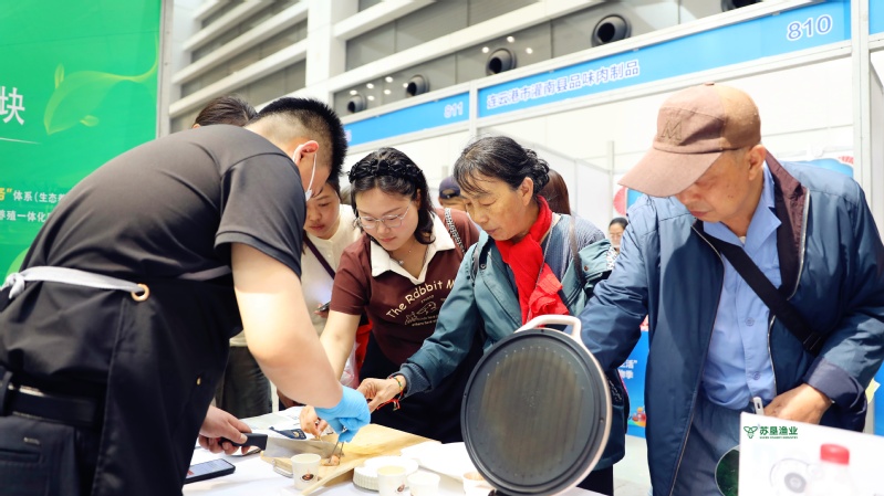 在剛剛結(jié)束的2025“蘇新消費(fèi)·夏夜生活”暨連云港第六屆網(wǎng)絡(luò)購物節(jié)上,蘇墾漁業(yè)的鮮蝦餅、金沙蝦球、蝦滑等對蝦系列產(chǎn)品開售兩小時(shí)便被搶購一空。圖為顧客現(xiàn)場品嘗對下系列產(chǎn)品。