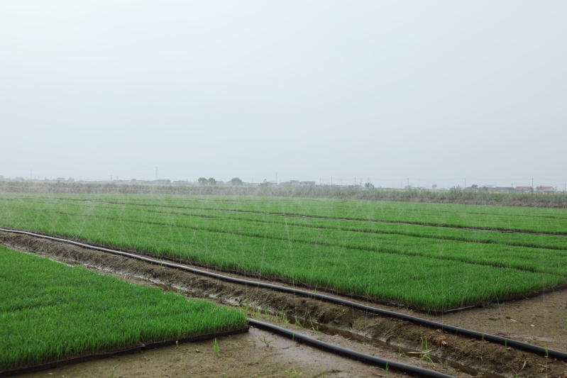 蘇墾農(nóng)發(fā)東辛分公司托管基地的水稻秧田生機(jī)勃勃。今年,托管基地全部推廣微噴灌育秧技術(shù),覆蓋1.2萬畝秧田,實(shí)現(xiàn)了技術(shù)全覆蓋,標(biāo)志著傳統(tǒng)水稻育秧向節(jié)水高效模式的跨越。