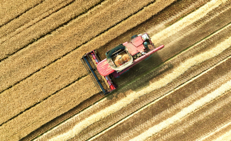 風(fēng)吹麥浪,滿地金黃。蘇墾農(nóng)發(fā)東壩頭分公司搶抓晴好天氣加緊搶收,數(shù)臺(tái)收割機(jī)馬力全開在田間來回穿梭,金黃的麥浪在轟鳴聲中起伏。